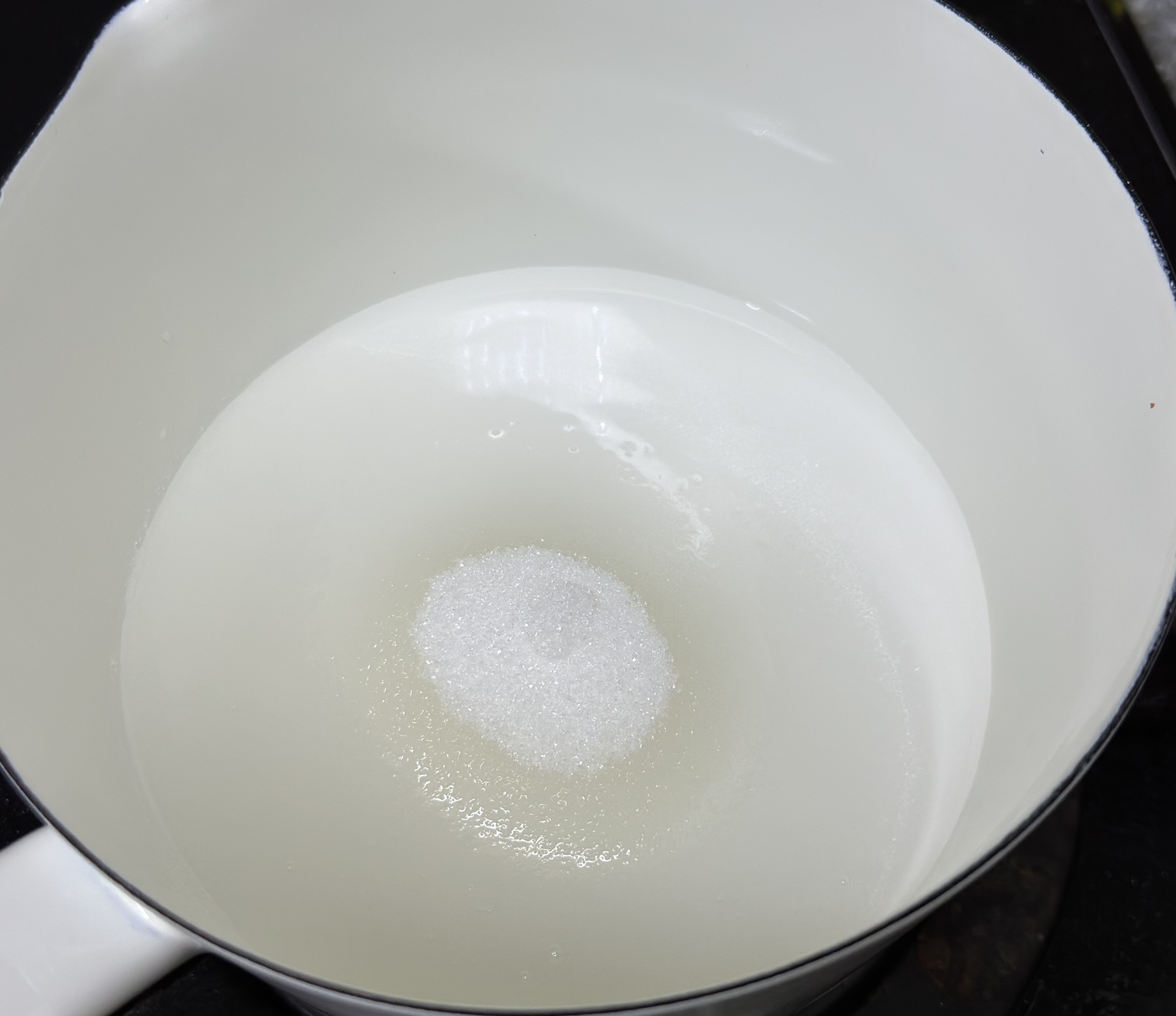 이때 설탕을 저으면 결정이 생겨서 딱딱하게 굳으니
