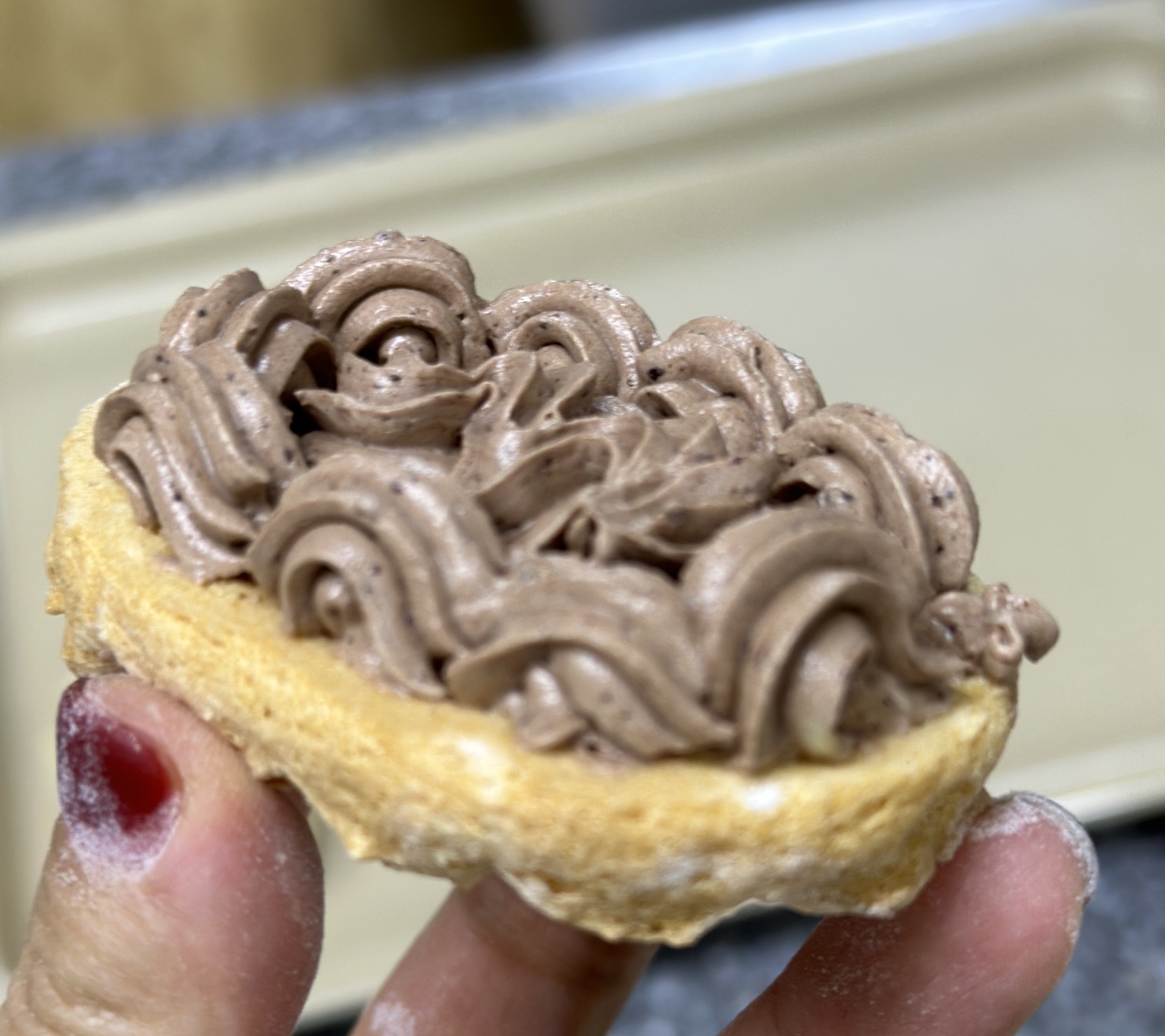 크림을 만드는 동안 다쿠와즈가 다 구워졌어요